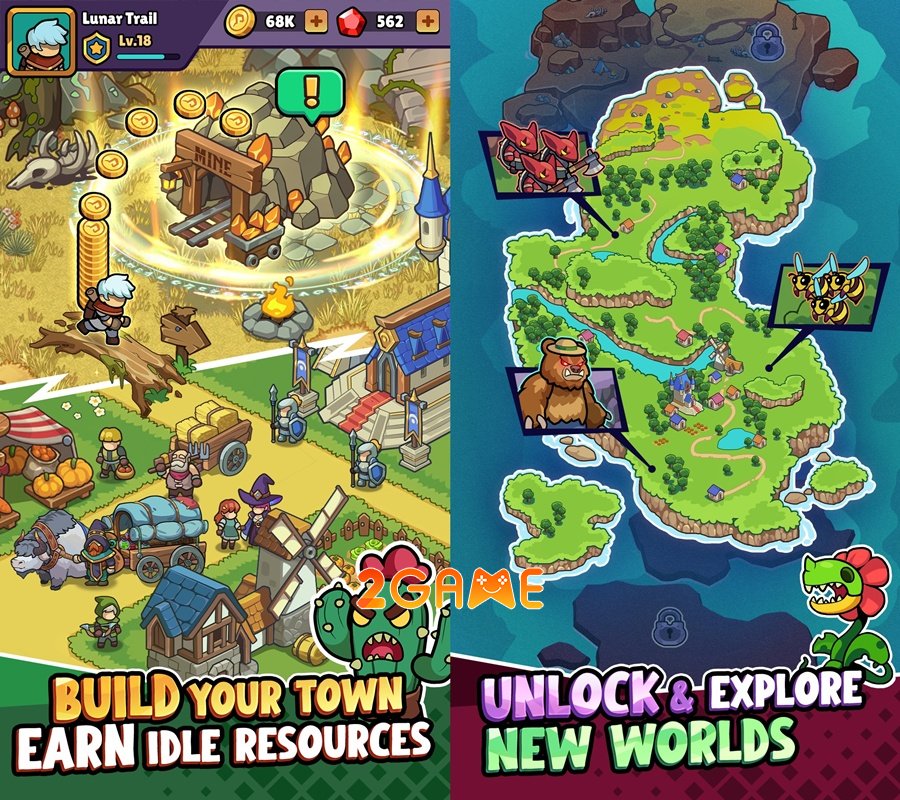 Điều tuyệt vời nhất là hệ thống treo máy: dù bạn tắt game, đóng ứng dụng hay bận rộn với cuộc sống, thị trấn vẫn âm thầm sản xuất vàng, đá quý và nâng cấp chỉ số cho anh hùng. Chỉ cần quay lại, bạn đã thấy balo sẵn sàng cho những thử thách mới. Chính sự cân bằng giữa hành động chủ động và phần thưởng thụ động này khiến game trở nên thân thiện, dễ chơi mọi lúc mọi nơi, chỉ với một tay điều khiển.