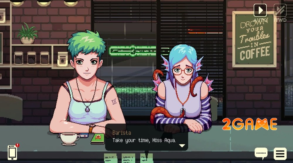 Điều làm game Coffee Talk Mobile đặc biệt chính là những câu chuyện đời thường, gần gũi đến nao lòng. Bạn sẽ gặp cặp tình nhân elf và succubus vật lộn với rào cản chủng tộc, một rapper orc đấu tranh với giấc mơ âm nhạc, hay cô gái trẻ lạc lối giữa tình yêu và sự nghiệp. Mỗi nhân vật đều mang hơi thở hiện đại, phản ánh những vấn đề xã hội thực tế như phân biệt đối xử, áp lực sáng tạo hay nỗi cô đơn đô thị. Nhạc nền lo-fi jazz du dương, được sáng tác riêng bởi các nghệ sĩ Indonesia, còn có album soundtrack phát hành độc lập, giúp game thủ dễ dàng “chill” ngay cả khi không chơi.