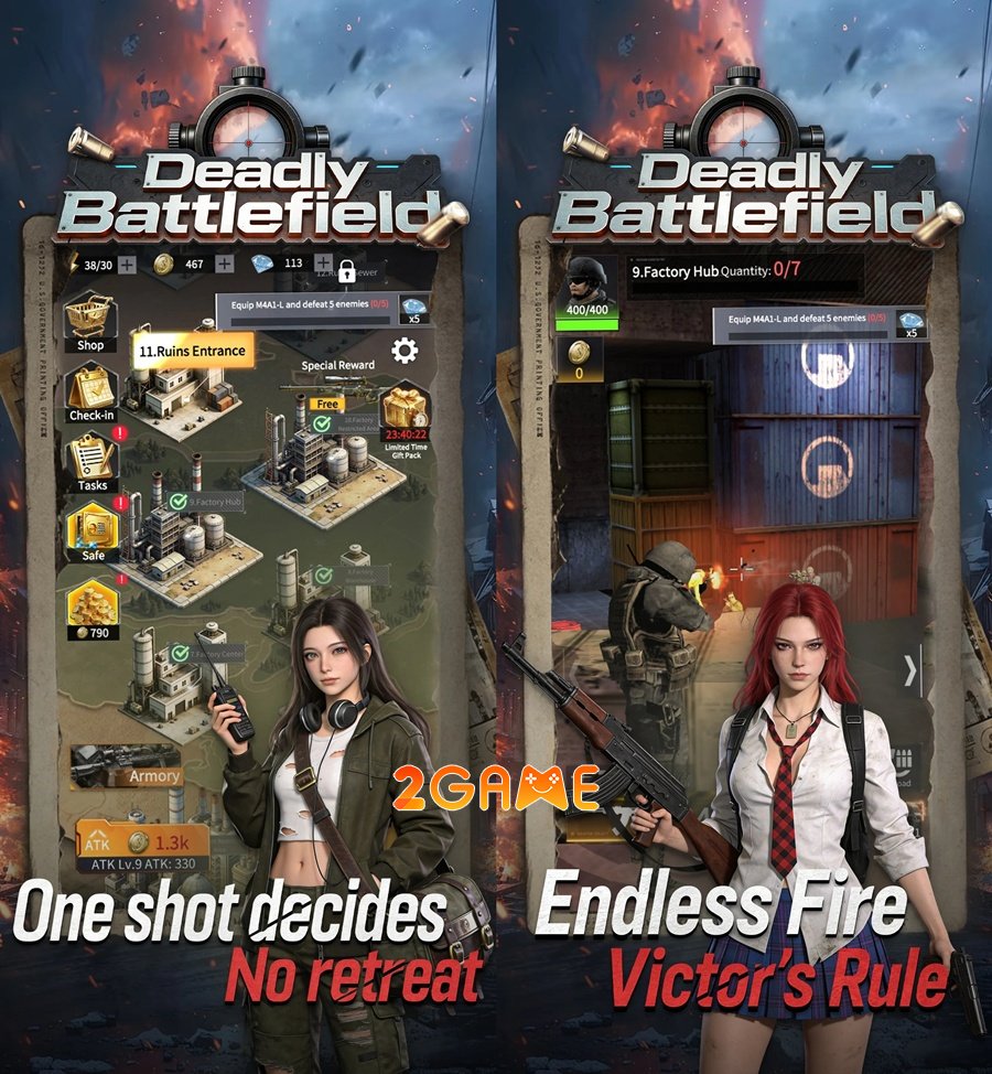 Điểm nhấn làm nên sự khác biệt của game Deadly Battlefield nằm ở cơ chế chiến đấu vô cùng linh hoạt và thực tế. Người chơi không bị bó buộc trong một lối chơi duy nhất mà hoàn toàn có thể chủ động thay đổi chiến thuật tùy theo tình hình thực tế trên chiến trường.