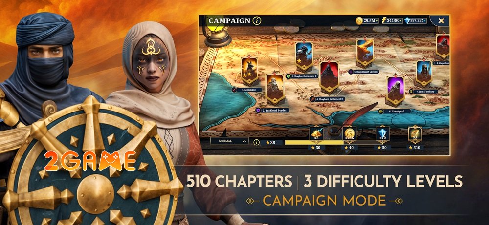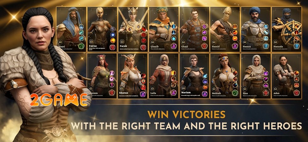 Trọng tâm của game chính là đội quân anh hùng mà bạn trực tiếp chiêu mộ và dẫn dắt. Mỗi nhân vật trong Desert Warrior Mobile đều sở hữu một câu chuyện đời tư riêng biệt cùng bộ kỹ năng độc bản, cho phép bạn thỏa sức sáng tạo nên những đội hình chiến thuật không giới hạn.