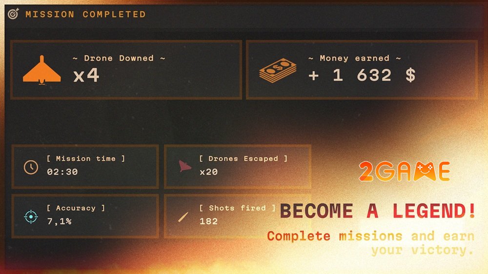 Bầu trời đêm bỗng rực cháy. Tiếng “vo ve veeee” ghê rợn của hàng chục Shahed-136 xé toạc không gian, lao thẳng xuống thành phố đang chìm trong giấc ngủ. Chỉ còn bạn – một xạ thủ đơn độc trên chiếc pickup gắn súng máy 12.7mm – là hy vọng cuối cùng. Đạn lửa vẽ đường parabol đỏ rực giữa màn đêm, trúng động cơ: BÙM! Một quả cầu lửa khổng lồ nở bung, mảnh vỡ tung tóe như pháo hoa tử thần. Bạn hét lên trong sung sướng, tim muốn nhảy ra khỏi lồng ngực. Đó chính là những trải nghiệm khi chơi game Drone Hunter.
