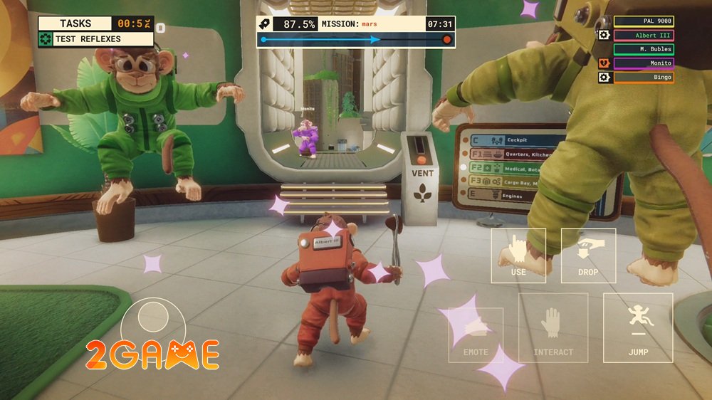 Thay vì lừa dối, trong tựa game này bạn sẽ cùng nhau cười vang khi cố gắng vượt qua hỗn loạn, giống như những cuộc phiêu lưu thực tế trong lịch sử chinh phục vũ trụ, nơi các nhà khoa học từng gửi những chú khỉ như Ham hay Enos lên không gian để thử nghiệm, mở đường cho con người bay vào quỹ đạo.