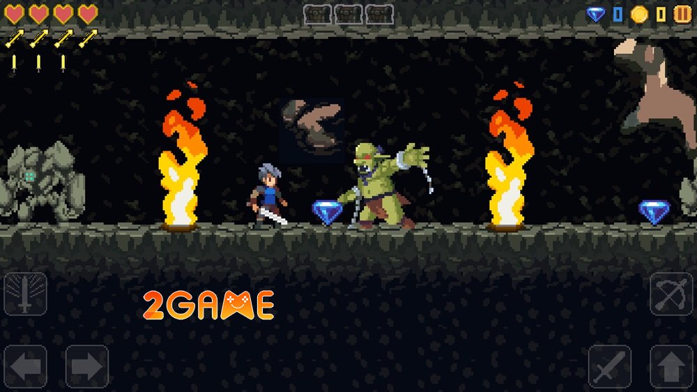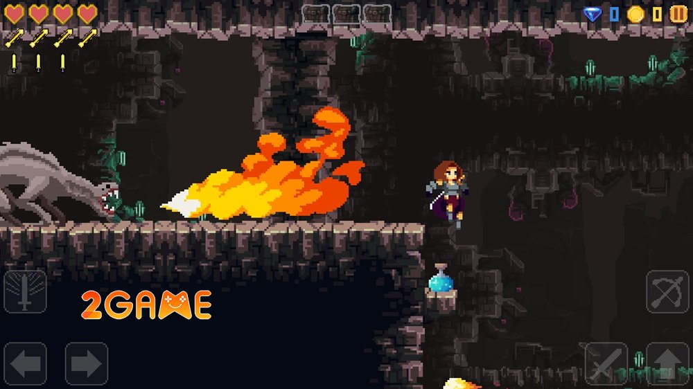 Thế giới trong game Magic Sword Adventure Mobile được chia thành bốn vùng đất riêng biệt, mỗi nơi đều mang một vẻ đẹp pixel art độc đáo, khiến hành trình của bạn trở nên đa dạng và đầy màu sắc. Bắt đầu từ những khu rừng huyền ảo, nơi cây cối um tùm che phủ bí mật, bạn sẽ cảm nhận được hơi thở của thiên nhiên hoang dã, với ánh sáng lọc qua tán lá tạo nên những hiệu ứng lung linh. Dần dần, cuộc phiêu lưu dẫn bạn sâu vào những hang động tối tăm, nơi ánh sáng từ ngọn đuốc le lói chiếu sáng những lối đi chật hẹp đầy bẫy rập. Rồi đến những hầm mỏ nguy hiểm, với đá tảng lởm chởm và dòng lava đỏ rực, thử thách khả năng sinh tồn của bạn đến giới hạn.