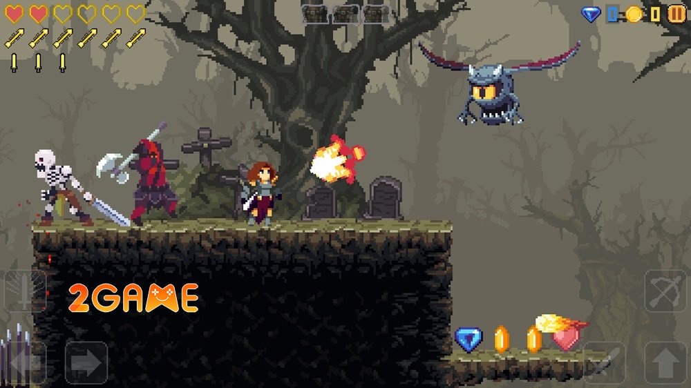 Mỗi cú nhảy đều mang cảm giác tự do, như thể bạn đang bay lượn giữa không trung, trong khi tiếng kiếm va chạm vang vọng tạo nên sự phấn khích không ngừng. Khi bạn đánh bại chúng, những đồng xu vàng óng ánh và viên đá quý lấp lánh sẽ rơi ra, như phần thưởng cho sự dũng cảm, giúp bạn nâng cấp sức mạnh để tiến xa hơn.