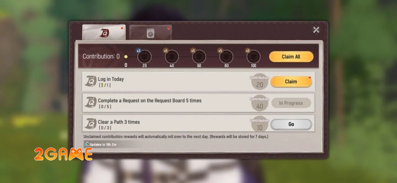 Để hành trình thám hiểm luôn diễn ra suôn mượt và tràn đầy hứng khởi, việc ưu tiên hàng đầu mỗi khi đăng nhập vào game chính là thực hiện các nhiệm vụ Đóng góp hàng ngày (Daily Contributions). Đây được xem là nguồn cung cấp kinh nghiệm thám hiểm ổn định và dồi dào nhất, đóng vai trò như bộ khung vững chắc cho quá trình phát triển của bạn.