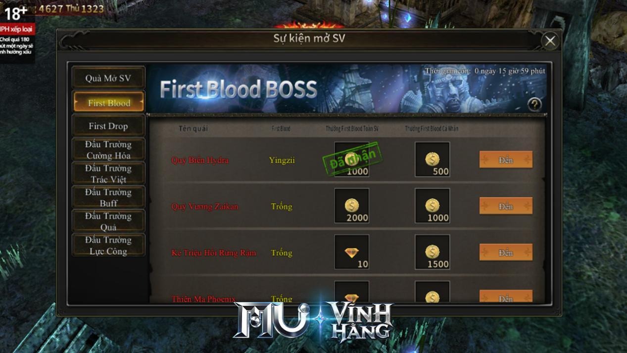 Chinh phục thế giới MU, mỗi bước đi đều nhận được hồi báo! Khám phá bản đồ rộng lớn, farm quái, không chỉ trải nghiệm sự sảng khoái khi chiến đấu, mà còn có thể thu nhận trang bị rơi ra bất cứ lúc nào. Và khi bạn cùng đồng đội hợp sức hạ gục Boss mạnh để hoàn thành nhiệm vụ First Blood, First Drop sẽ nhận được lượng lớn vàng, kim cương và phần thưởng tặng thêm khác! Danh dự và tài sản tích lũy đồng thời, giúp bạn liên tục bất ngờ và nhận thưởng không ngừng trên hành trình phiêu lưu!