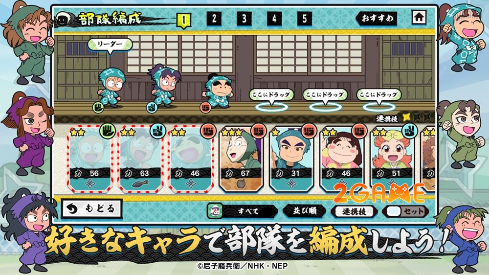 Nhưng đừng nghĩ mọi thứ đều dễ dàng như thế, game Nintama Rantaro: Jumping Puzzle Rank Up khéo léo nâng tầm bằng hệ thống combo thông minh và Sức mạnh Liên kết (Bond Power). Khi đập các đồng minh vào nhau thay vì kẻ thù, bạn kích hoạt chuỗi combo liên hoàn, tái sử dụng nhân vật đã dùng và tích tụ năng lượng để mở khóa Đòn tấn công Kết hợp – những pha phối hợp đồng đội đỉnh cao như Doi Hansuke buff sức mạnh toàn đội 10% kèm shuriken phân tán, hay Rantarou 5 sao lao vào hỗ trợ đa năng, giúp vượt ải mượt mà hơn bao giờ hết.