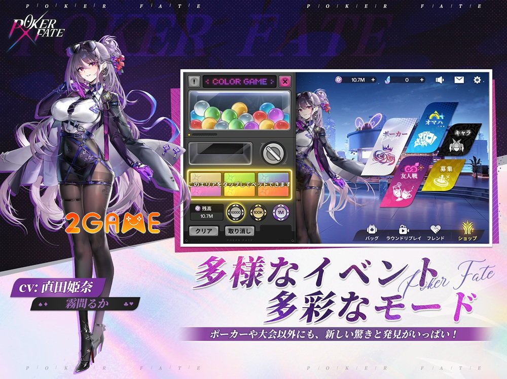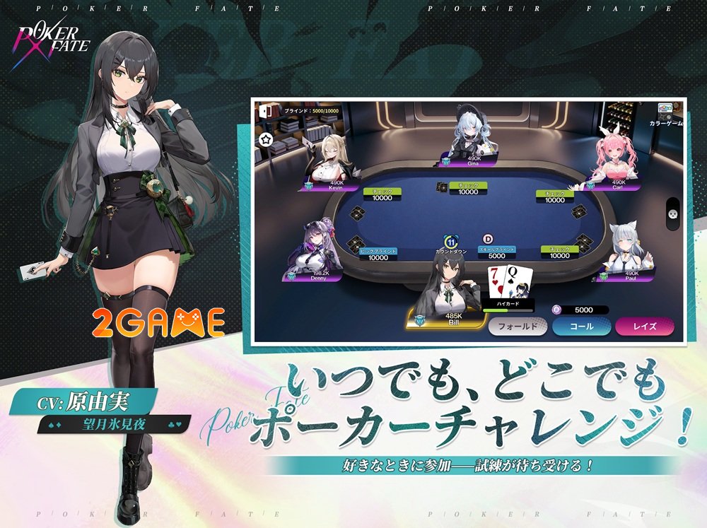 Poker Fate lấy luật chơi Texas Hold’em quen thuộc, nhưng nâng tầm bằng cách kết hợp yếu tố hợp tác và chiến lược sâu sắc. Bạn có thể chọn một “người chơi định mệnh” – một nhân vật đáng yêu với tính cách riêng biệt, giọng nói quyến rũ từ dàn lồng tiếng nổi tiếng như Sumire Uesaka hay Yumi Hara – để cùng chiến đấu.