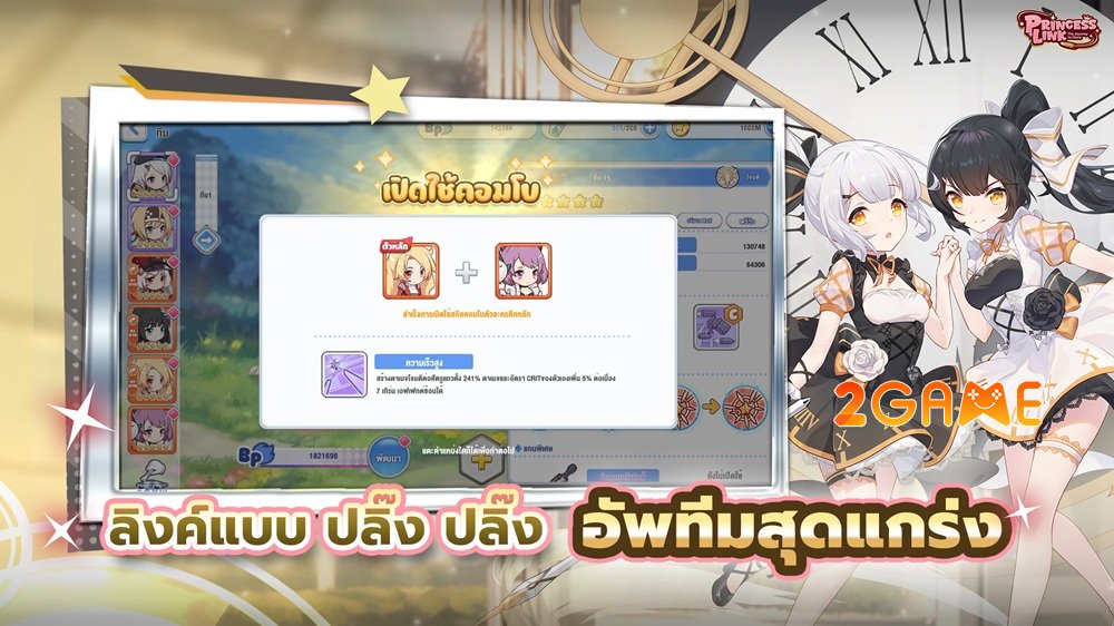 Trong chiến đấu, Princess Link Mobile thể hiện sự khác biệt rõ rệt. Hệ thống chiến đấu 6 vs 6 chiến thuật thông minh đặt trên bàn cờ 2×3 độc đáo. Vị trí đứng của mỗi công chúa ảnh hưởng trực tiếp đến sức mạnh và khả năng sống sót. Kết hợp đúng các nhân vật sẽ kích hoạt Synergy mạnh mẽ – những hiệu ứng đặc biệt có thể lật ngược thế trận chỉ trong tích tắc. Những combo kỹ năng rực rỡ, hiệu ứng ánh sáng lấp lánh cùng âm thanh sống động mang lại cảm giác cực kỳ đã tay và thỏa mãn.