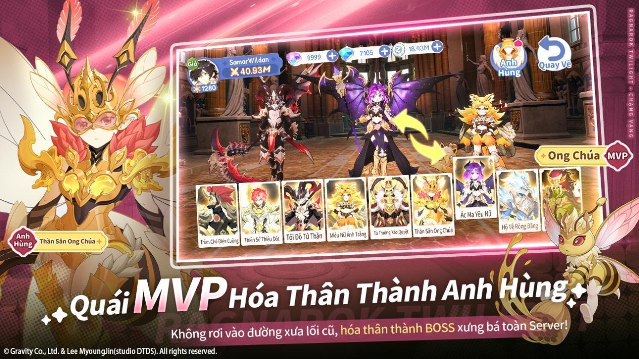 Hệ thống Anh Hùng tiến hóa từ quái MVP hoàn toàn mới chính thức xuất hiện, cho phép bạn hóa thân thành nhiều Anh Hùng MVP khác nhau, tận hưởng trải nghiệm chiến đấu hoàn toàn khác biệt, phá vỡ mọi giới hạn và biến thành những BOSS hùng mạnh! Khi Thiên Sứ Poring dang rộng sáu đôi cánh ánh sáng của mình, khi Ác Ma Poring thức tỉnh huyết mạch bóng tối… Những quái MVP từng quen thuộc nay đã phá vỡ giới hạn không gian, tiến hóa thành hình thái Anh Hùng sở hữu sức mạnh cấp độ thần thoại! Làm chủ sức mạnh hủy diệt đất trời, trở thành huyền thoại trong thế giới phiêu lưu!