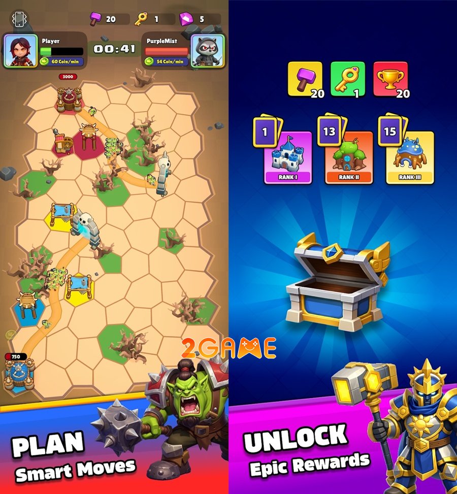Bước vào game Rival Realms, bạn sẽ ngay lập tức bị cuốn vào một vòng xoáy của những trận chiến khốc liệt, nơi sự kết hợp hoàn mỹ giữa thể loại phòng thủ tháp cổ điển và lối chơi chiến đấu cạnh tranh hiện đại tạo nên một trải nghiệm độc bản, thôi thúc người chơi phải không ngừng tư duy và sáng tạo để bảo vệ bờ cõi của chính mình.