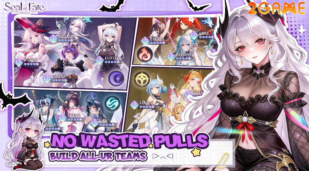 Game nhập vai nhàn rỗi Seal of Fate: Mirage sẽ cho người chơi tự do xây dựng đội hình với gần 100 nhân vật UR khác nhau. Mỗi nhân vật trong game đều được thiết kế với bộ kỹ năng của riêng họ, từ đó người chơi có thể sáng tạo xây dựng đội hình để tạo nên một biệt đội mạnh mẽ có thể càn quét các đối thủ.