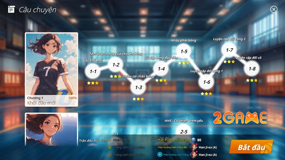 Trong game Thiếu Nữ Bóng Chuyền, bạn sẽ dẫn dắt một đội bóng chuyền nữ, từ những sân trường giản dị đến ánh hào quang của chức vô địch quốc gia. Hành trình bắt đầu với Han Ji-su, một cô gái trẻ cháy bỏng đam mê, cùng đồng đội vượt qua những thử thách để biến một đội bóng non trẻ thành biểu tượng bất bại.